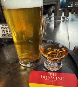 Also of note was the Templin Family Brewery, called “TF Brewing”, established in 2018 in what is now a glittering jewel of a tap room, with chrome, stone and wood – with a large and bright bar and copious seating at tables and couches. According to their website Templin describes themselves as: “We are deeply rooted in a reverence for the German way of making beer: brewing with fresh, high-quality ingredients; slow pours, and big foam”. You can bet I had a “milko” pour when I was there made from their fine Helles lager – big foam indeed. To my complete delight they also had some custom made High West blended whiskeys only available at their brewery (they explain that the High West people worked for Templin at one point, and so made special batches from hand picked barrels). While kind of expensive, a dram of “American Prairie” aged in brandy barrels at $25 was a tasty accompaniment to their crisp german lagers.