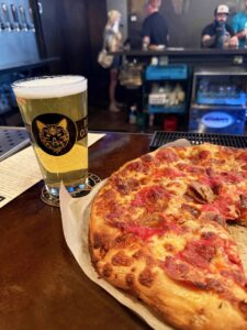 good humor, and the place was really jumping. The beer was very good, and the staff happily directed me to styles that matched my interests. Some really outstanding beer and pizza always puts me in a good mood – I think most of us would agree.